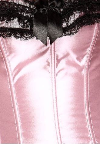 A popular plus size corset and skirt set, this sensational corset dress is finished with a black lace trim, top and bottom for a burlesque look, the matching detachable skirt is also finished in black lace detailed with black bows which can be worn at the front or back or side.